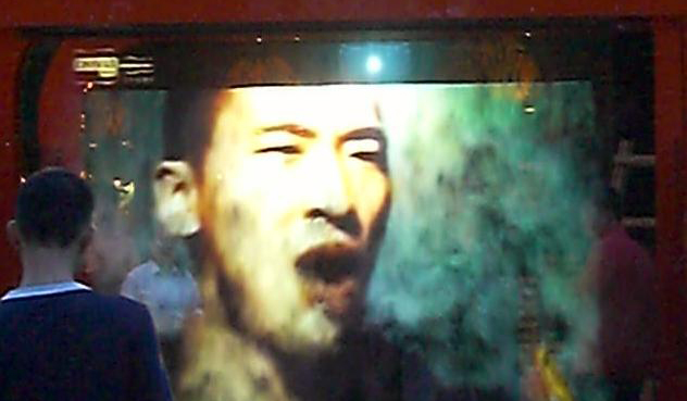 觀眾看到墻面上多個顯示設備中,每個顯示畫面中都有人物的視頻靜止影像。每臺電視下都有一個控制按鈕(可以是自動感應器),當觀眾按到其中一個時(當自動感應器撲捉有人接近 ……